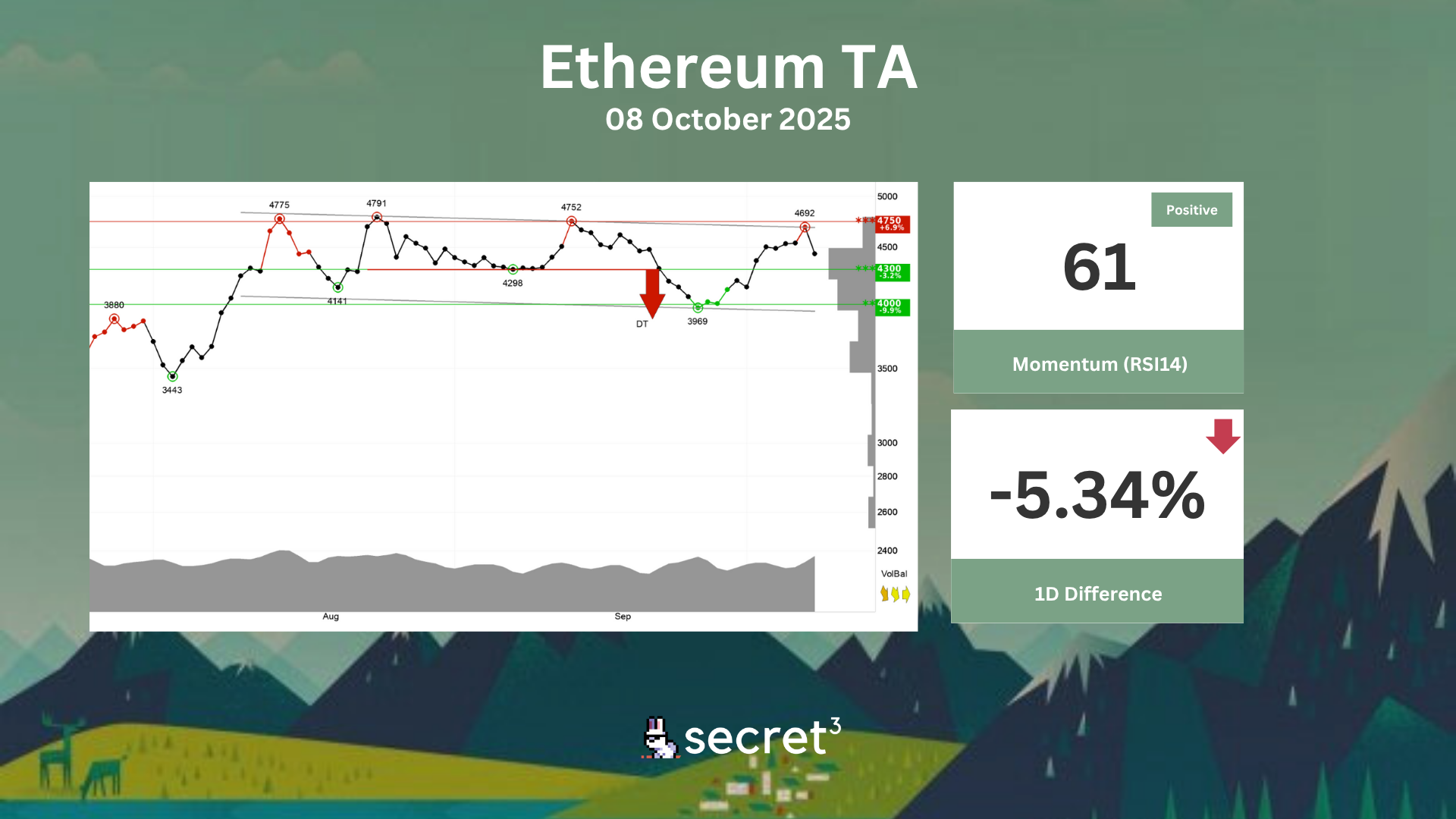 Ethereum - Ethereum is within an approximate horizontal trend channel in the short term, which indicates further development in the same direction. The currency is between support at points 4300 and resistance at points 4750. A definitive break through of one of these levels predicts the new direction. The currency is assessed as technically neutral for the short term.