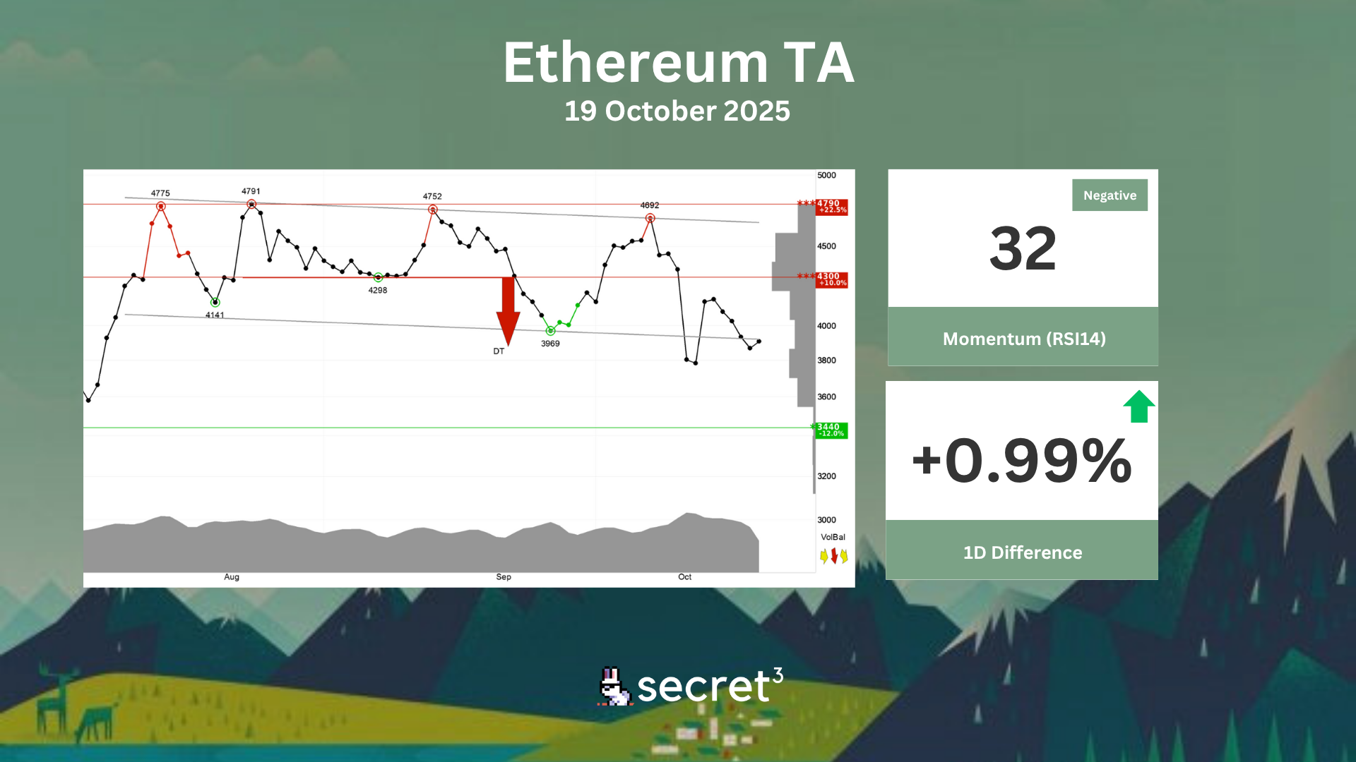 Ethereum - Ethereum has broken down from an approximate horizontal trend channel in the short term. This signals a continued weak development, and the currency now meets resistance on possible reactions up towards the floor of the trend channel. The currency has support at points 3440 and resistance at points 4300. Negative volume balance indicates that sellers are aggressive while buyers are passive, and weakens the currency. The currency is overall assessed as technically negative for the short term.