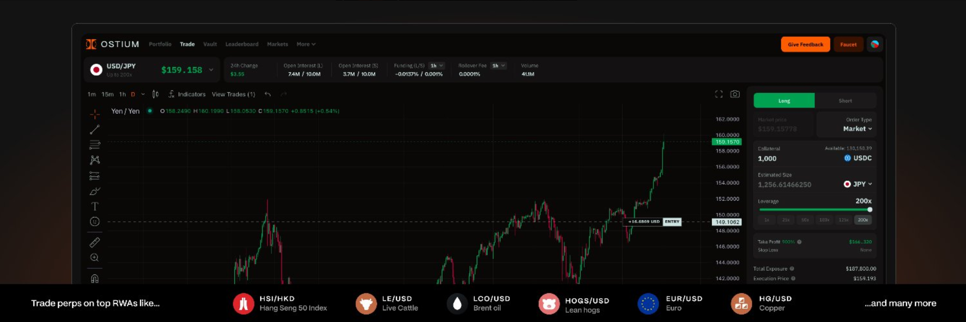 The Ostium Protocol is an open-sourced, decentralised exchange built on Ethereum Layer 2 Arbitrum, providing transparent and non-custodial perpetual exposure to Real World Assets. Designed to enable fully on-chain trading, Ostium allows users to trade perpetuals on a wide range of assets, including Forex, Commodities, Indices, and blue-chip Cryptocurrencies. Users can also deposit stablecoins to supply liquidity to the protocol and actively contribute to its development by engaging in community discussions and providing product feedback through open forums.